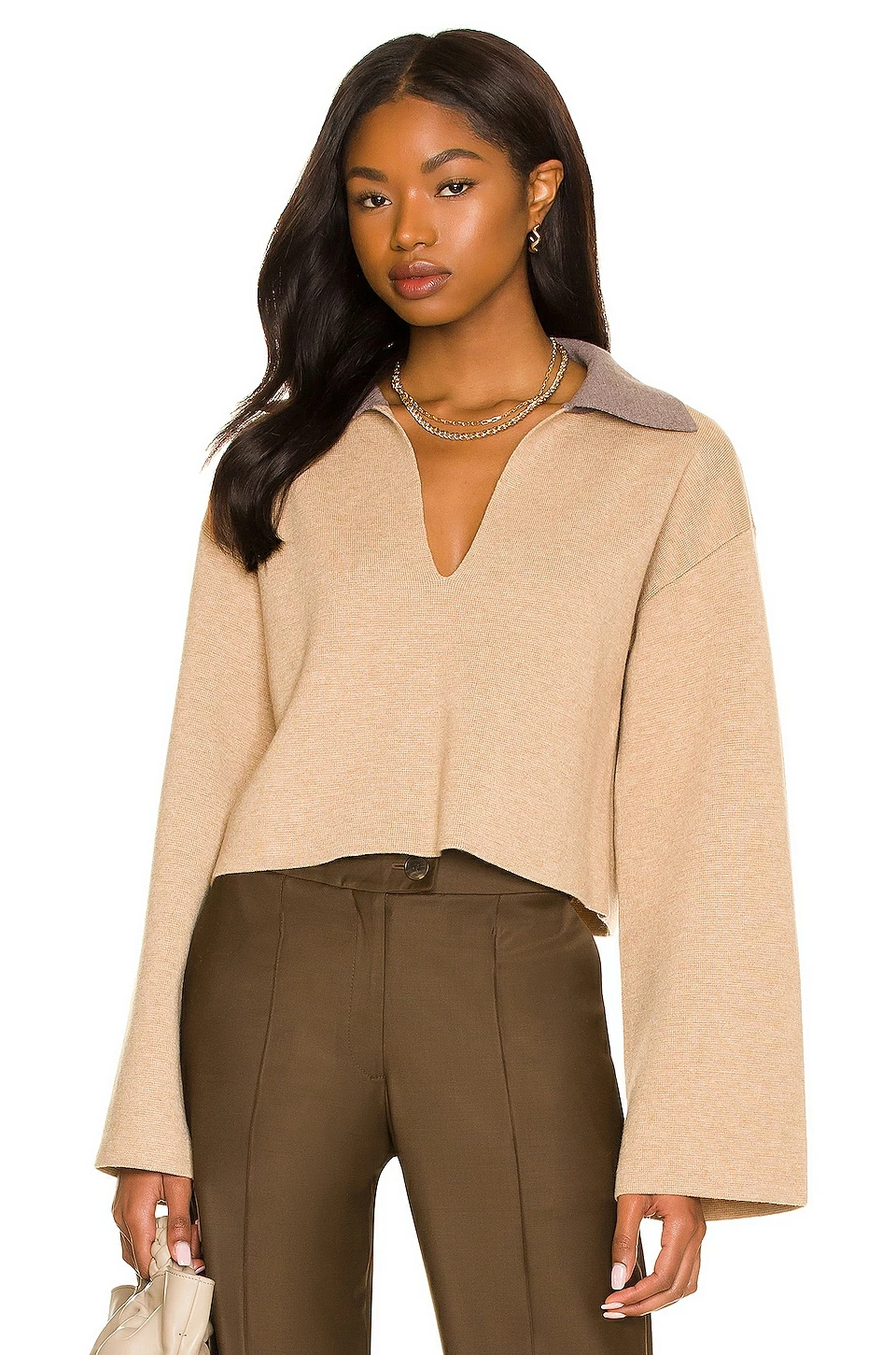Song Of Style Rayan Polo Pullover In Camel & Brown